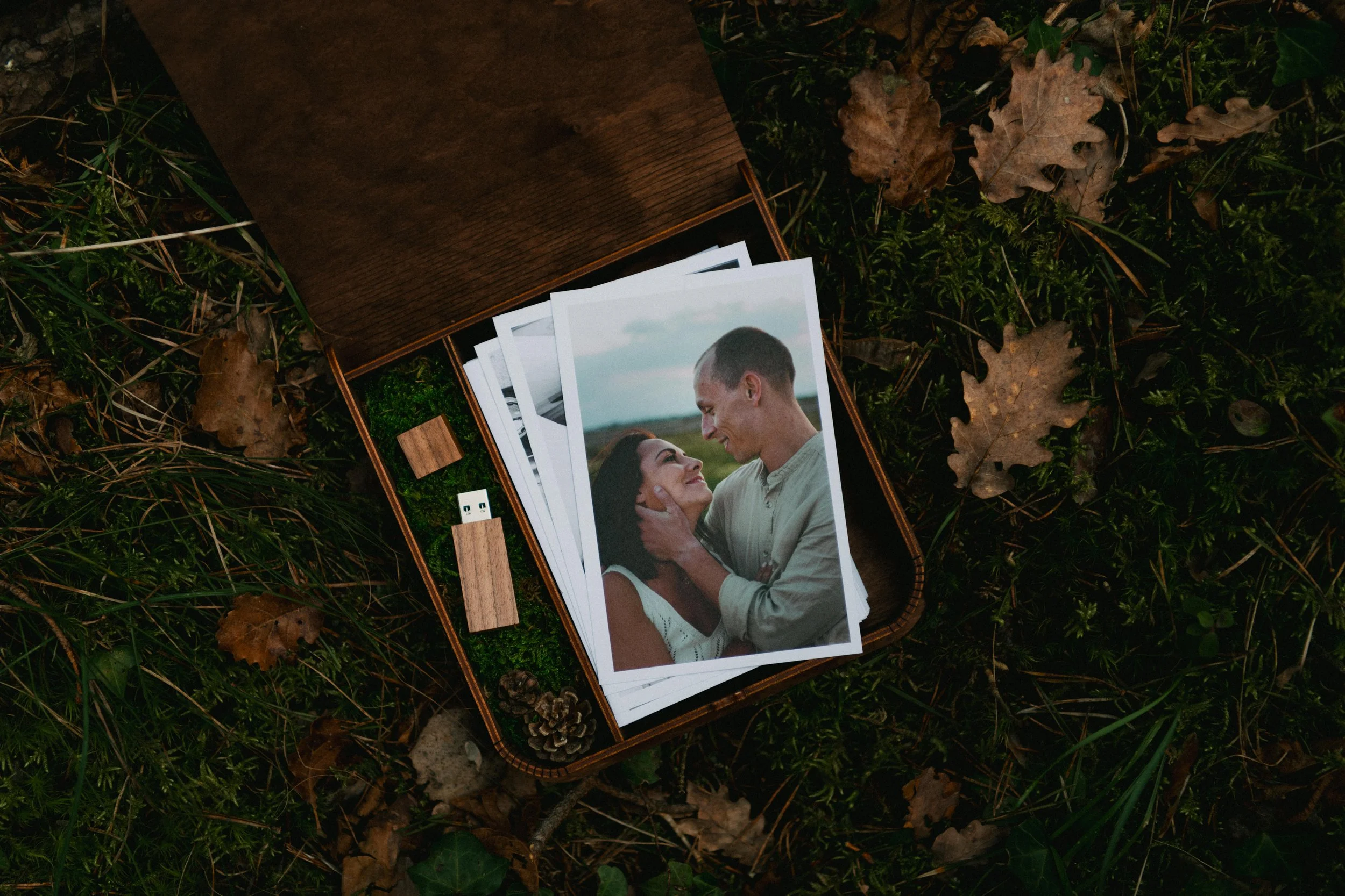 Parfait pour offrir ou pour une jolie déco de table basse, à l’intérieur, 72 tirages photos (au choix dans votre galerie de mariage) et une clé USB en bois (copie de votre galerie).